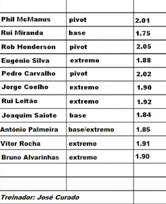 | Em cima:S.Toledo,P.Simão,A.Cruz,J.Moore,D.Muse,J,Barros.Em baixo:R.Silva,L.Simão, J.Arcega,J.Paiva,D.Cerezo |